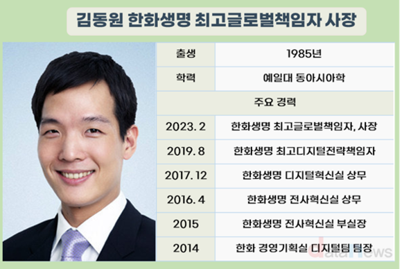 한화생명은 2023년부터 김동원 사장이 최고글로벌책임자(CGO)를 맡고 있다. 김 사장은 김승연 한화그룹의 장남이다. 김 사장은 CGO로 자리를 옮긴 이후 ▲리포손해보험 ▲인도네시아 노부은행 ▲벨로시티 등을 잇따라 인수하며 해외사업에 승부수를 띄웠다.
