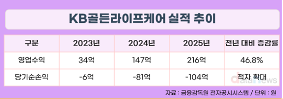 KB라이프생명의 요양사업 자회사인 KB골든라이프케어가 지난해에도 적자를 이어갔다. 2023년 말 KB라이프생명에 인수된 이후 손실 폭이 확대되는 모습이다.