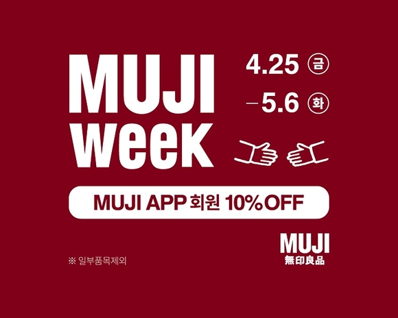 무인양품(MUJI KOREA)은 전 품목을 10% 할인하는 연중 최대 고객 감사 행사 ‘무지위크’를 시작한다고 25일 밝혔다. 행사는 25일부터 5월 6일까지 12일 동안 진행된다.