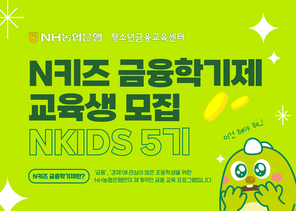 NH농협은행(은행장 강태영)은 초등학생들의 체계적인 금융교육에 앞장서고자 2026년 N키즈 금융학기제 교육생을 2월 2일부터 선착순 모집한다고 밝혔다.