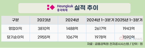 흥국화재의 지난해 3분기 누적 영업이익과 순이익은 1943억 원, 1590억 원으로 전년 동기(2617억 원, 1978억 원) 대비 25.8%, 19.6%씩 감소했다. 본업인 보험손익이 감소(2276억 원→1320억 원)한 데 영향을 받았다.