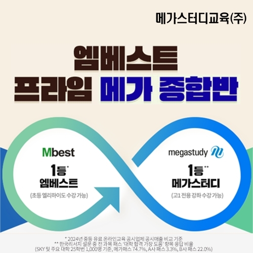 메가스터디교육 중등 인강 1위(2016~2024년 중등 유료 온라인교육 공시업체 공시 매출 비교 및 주요 중등 인강 누적 성적 장학생 배출 데이터 기준)인 엠베스트의 ‘프라임 메가 종합반’은 이러한 흐름에 맞춰 설계된 통합 학습 상품이다.