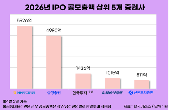 한국투자증권과 미래에셋증권이 1000억 원대의 공모액을 쌓으며 그 뒤를 이었다.
