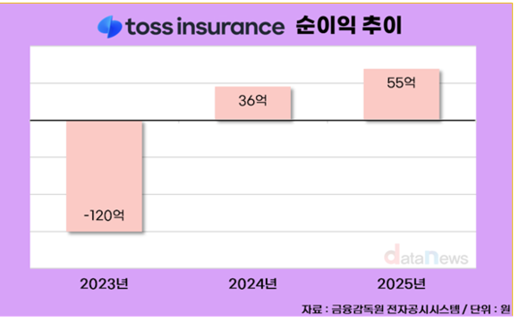 20일 데이터뉴스가 금융감독원 전자공시시스템에 공시된 토스인슈어런스(토스인슈)의 감사보고서를 분석한 결과, 지난해 순이익은 55억 원으로 집계됐다.